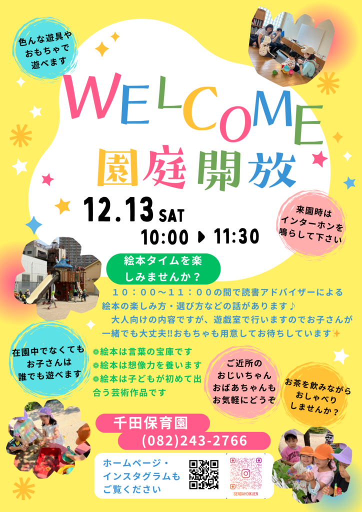【welcome園庭開放】 12月13日(土)にぜひ遊びに来てください。